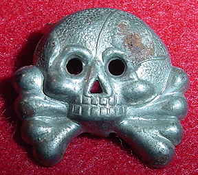 This is a very fine silver-finished steel jawless skull for the Panzer collar tab. All three mounting prongs are present.
