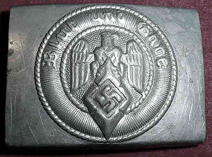 Nazi Hitler Youth Belt Buckle (RZM M4/24). This is a fine later war Hitler Youth belt buckle of heavy grey metal with a chromed steel sizing roller and prongs. This belt buckle is RZM maker-coded “M4/24” (Friedrich Linden, Ludenscheid maker). Our price…$80. SOLD